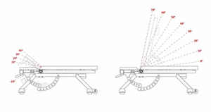The Commercial Adjustable Bench with Sit-Up/Decline Attachment features a telescoping design for added stability and a sleek appearance. With 9 back adjustments and 6 seat adjustments, this bench offers unparalleled versatility in the market. The back pad can be set from 0 to 85 degrees, while the seat can accommodate angles up to -15 degrees.