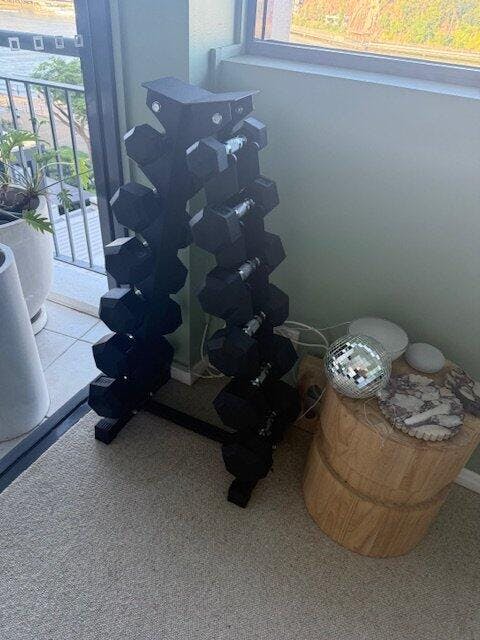Easy pick up point to easy set up. Dumbells are all perfect size for me to workout at home.